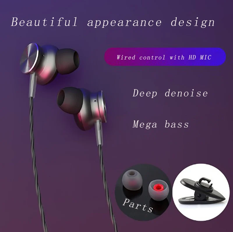 New style Smart line control with mic sport music earphone Aerospace metal materials 3D stereo surround sound denoise headset