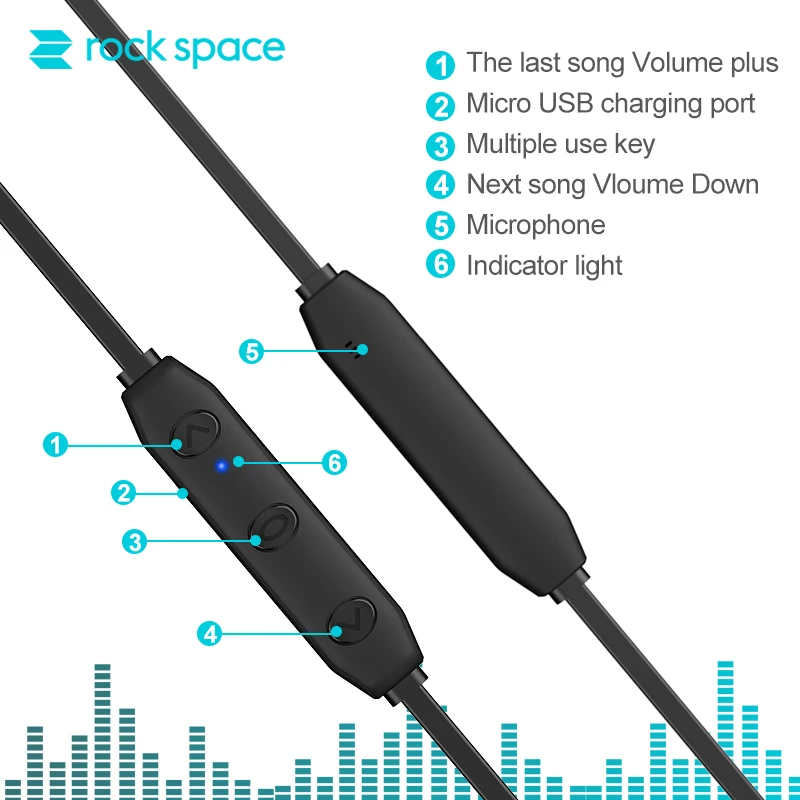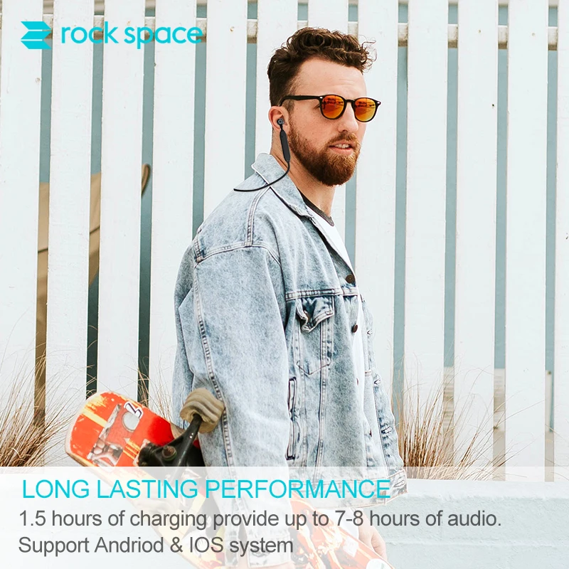 ROCKSPACE IPX4 Bluetooth 5.0 Wireless Earbuds Magnetic Design Noise Reduction In-ear For Gym Running With Mic Stereo Sound