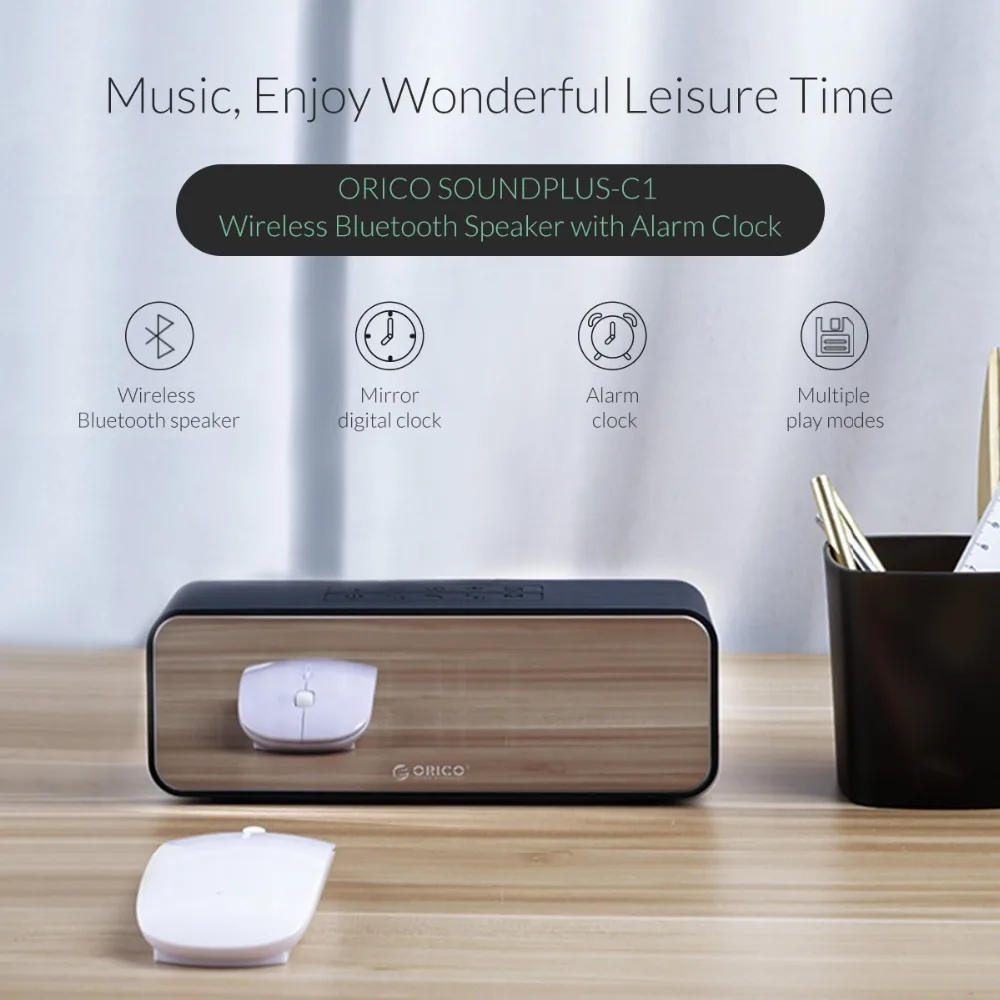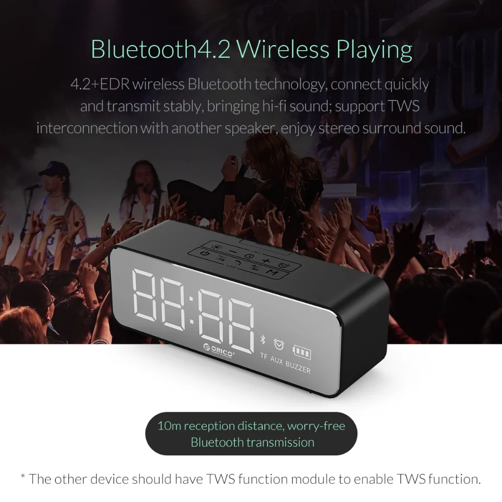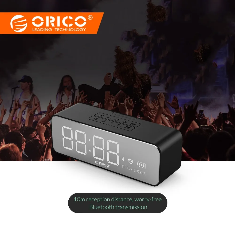 ORICO Portable Wireless Bluetooth Speaker Stereo Sound Box with Alarm Clock Mirror LED Time Screen Support TF AUX for Computer