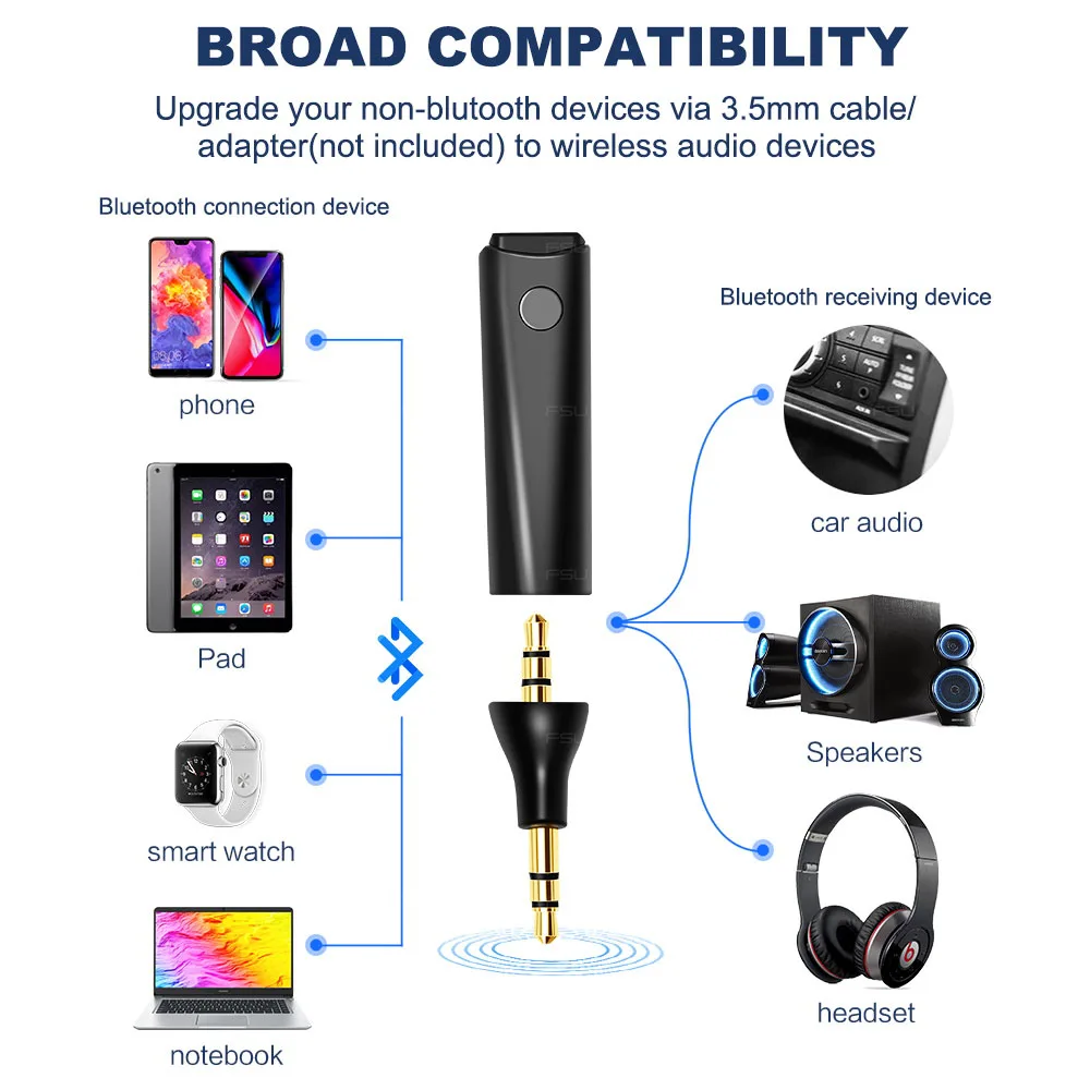 3.5mm jack Music 5.0 bluetooth receiver Wireless Adapter for headphone portable Audio Car Kit Receiver For Notebook Pad Phone
