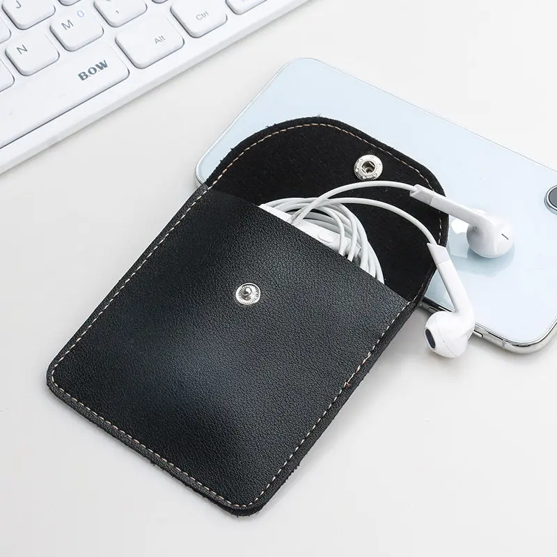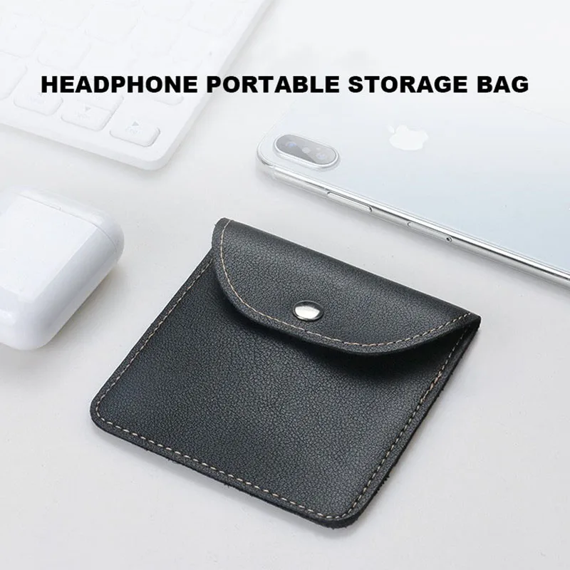 Headphone Storage Bag Mini Portable Headset Bag Protective Storage Box PU Leather Earphone Bag For Cable Earphone Accessories
