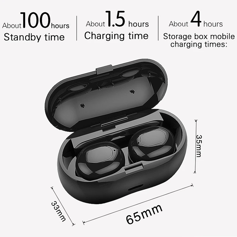 Mini Wireless Bluetooth Headset Charging Box Hifi Earbud With Mic Sports Headset Touch Control Earphone For Phone Black White T6