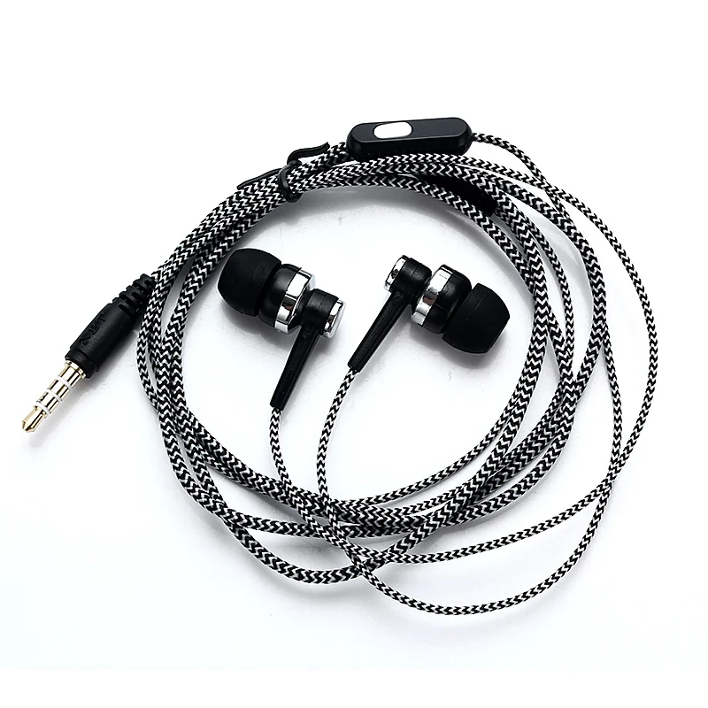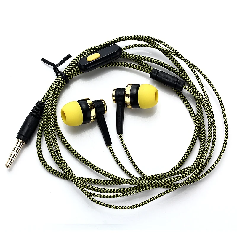 SK-38 Nylon Braided Headset Wired Earphone With Mic Portable Audio And Video Device for iphone Xiaomi Wired In-ear Earphones