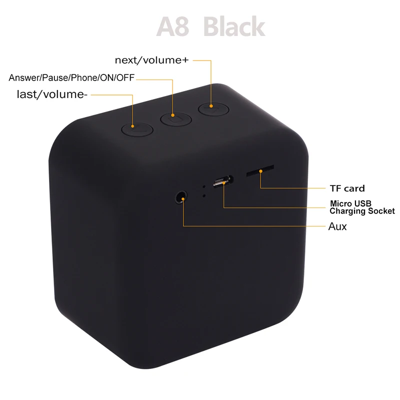 Wireless Loudspeaker Mini Bluetooth Speakers TF AUX USB Speaker Stereo Music Hifi Speaker Portable Bass Subwoofer Audio Gift A8