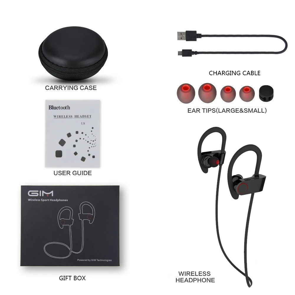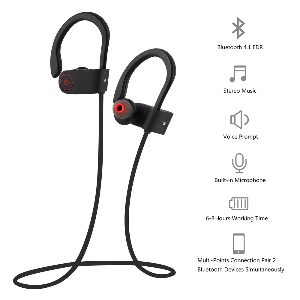 Bluetooth Headphones Fitness Sport Wireless In ear Earphones - IPX5 Handsfree Earbuds Lightweight Suitable for Running Gym Skip