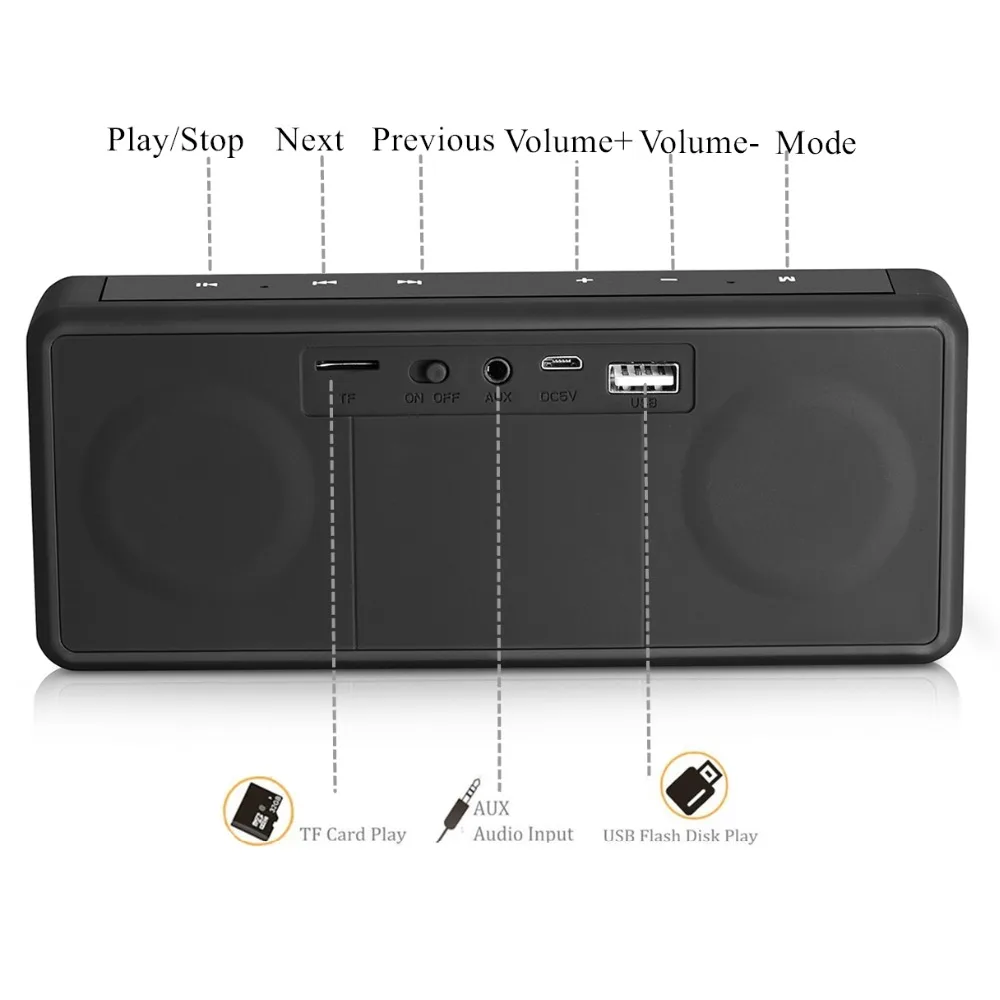 Cuboid stereo bluetooth speaker FM, wireless mini portable boombox mp3 music receiver player with radio 3.5mm aux column A34 A33