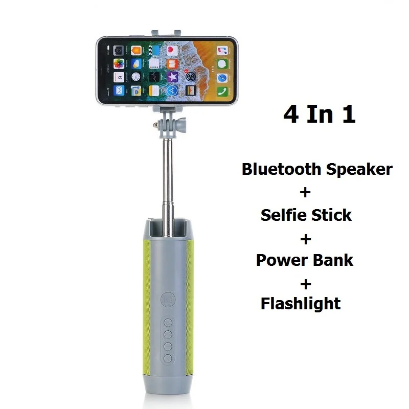 JOYTOP Outdoor Wireless Bluetooth Speaker Portable 2000mah Power Bank+Selfie Stick+Flashlight With Phone Holder Charger Audio
