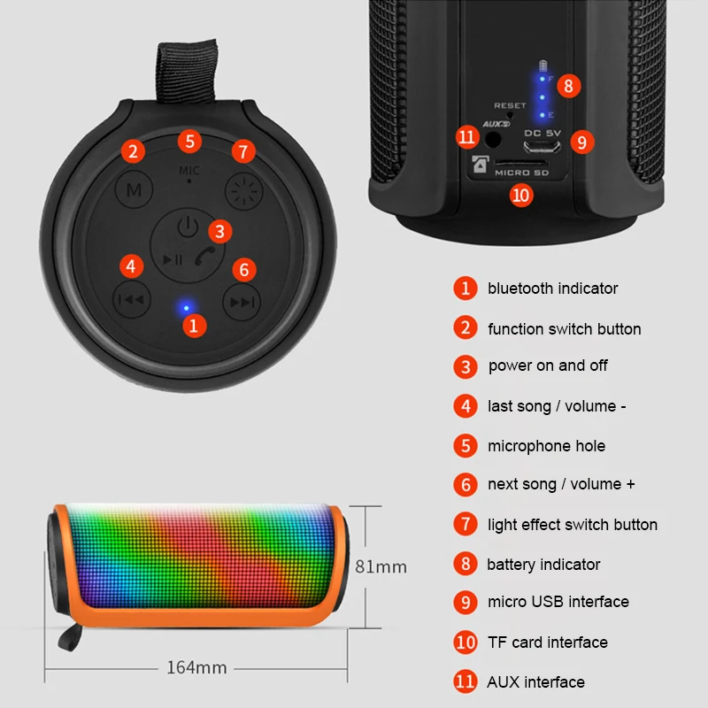 LED Light Bluetooth Speaker Portable Outdoor Wireless Speaker Colorful Subwoofer Waterproof Player Stereo Bass Loudspeaker M4