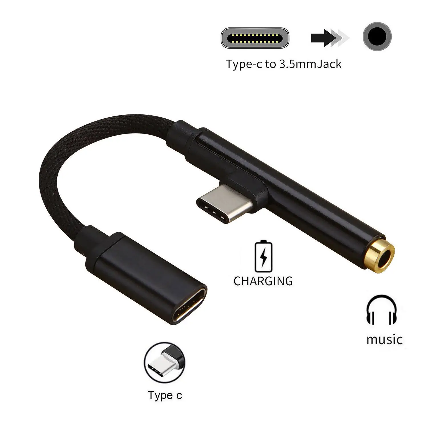 2in1 Type-C To USB-C 3.5mm Jack Aux Earphone Cable Adapter for Huawei P20 Xiaomi