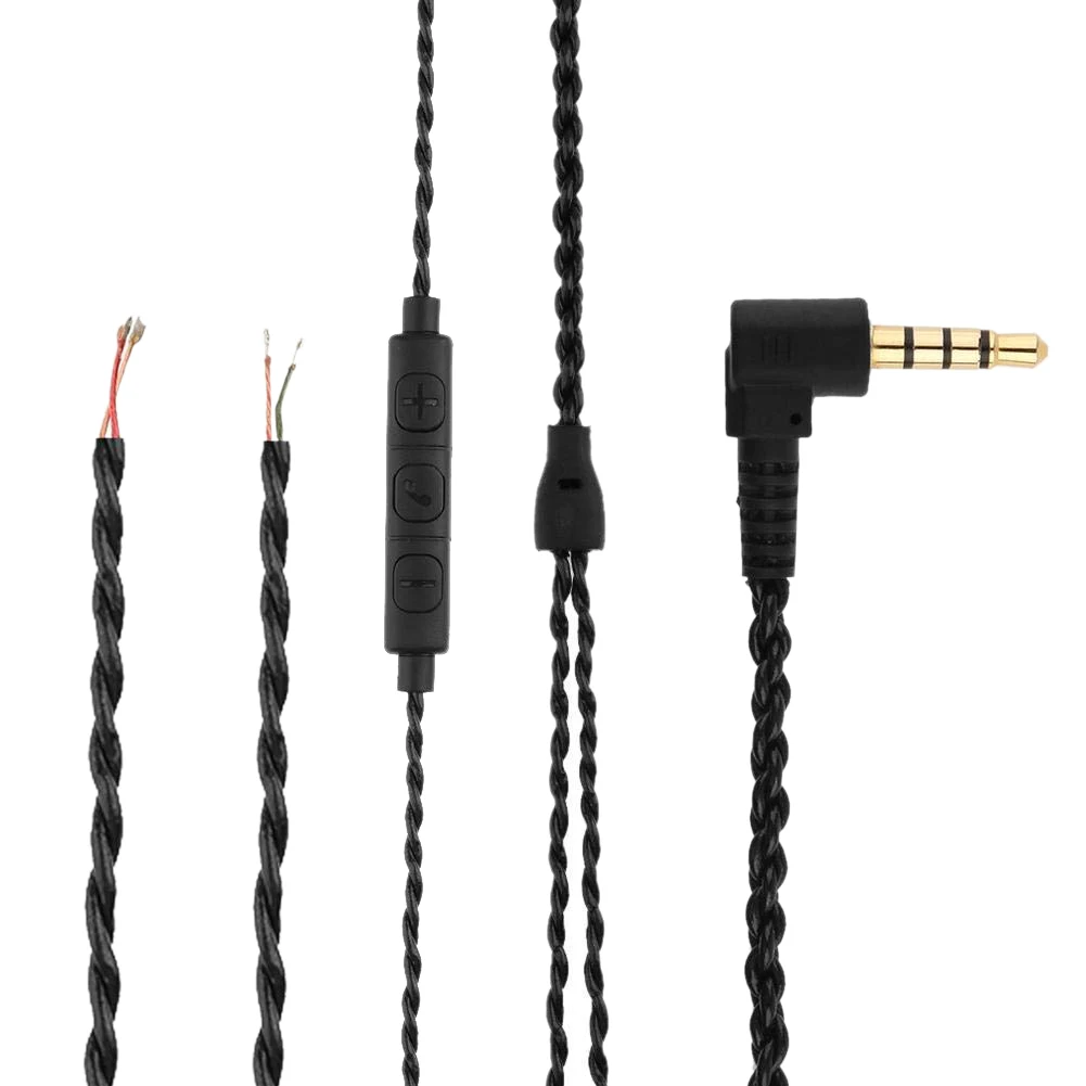 Earphone Audio Cable Repair Replacement 3.5mm TRS Jack DIY Elbow Headphone 4 Copper Core Wire with Mic Volume Control