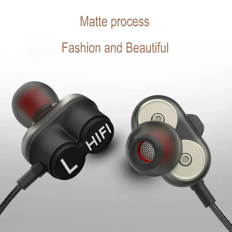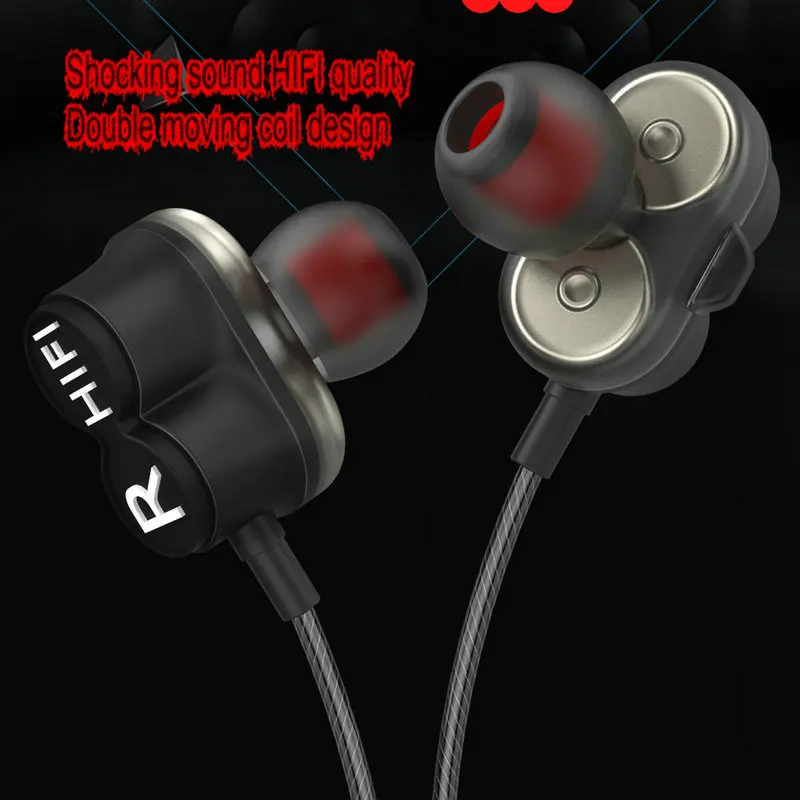 New Super Bass Stereo Music Earphones 3.5mm Wired earphones Dual Moving Coil Headsets with Microphone For MobilePhones,Sports