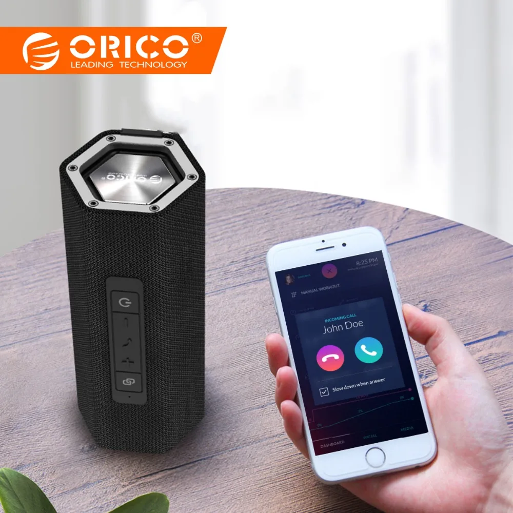 ORICO Portable Bluetooth4.2 Wireless Speaker Dual-Bass 6-Hour Playtime 10M Bluetooth Range IPX5 Water Resistance Support AUX TF