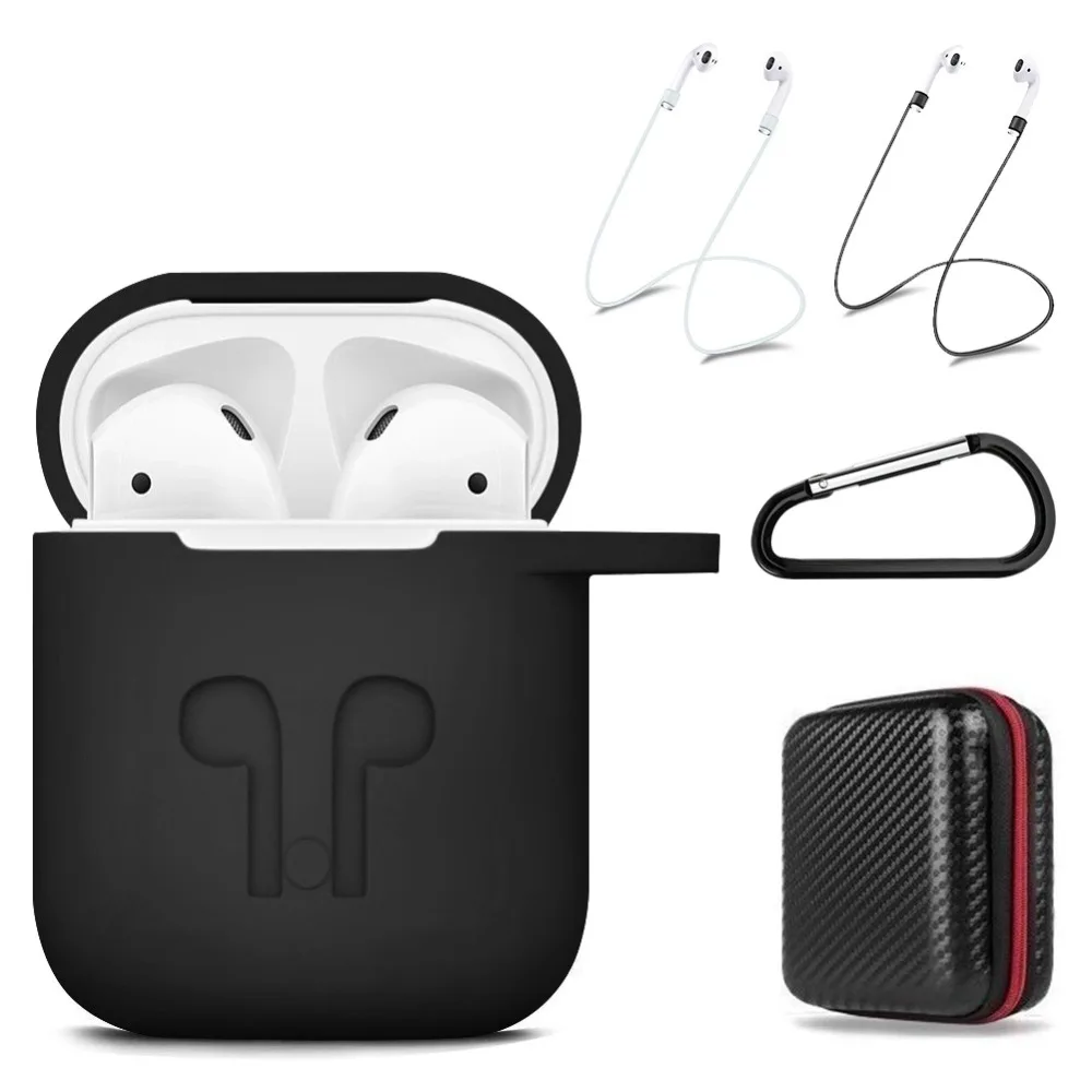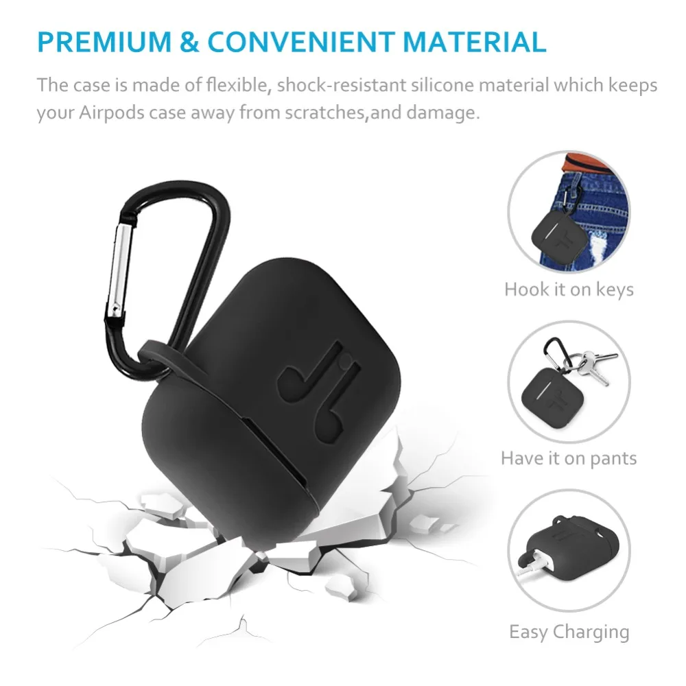 GIM AirPods Case Cover 7 in 1 AirPods Accessories Silicone Airpods Protective Cover Set with Clip Holder/Keychain/Strap/Earhooks