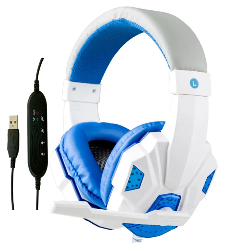 Headset For Gamer Stereo Headphones Over Ear Gaming Headband Earphone With USB Dual Microphones For PC Earphone Drop shipping