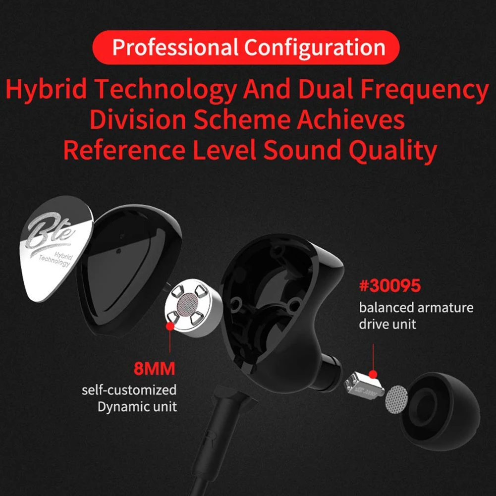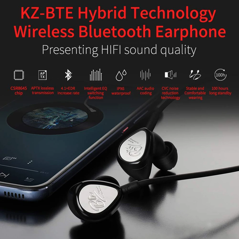 KZ BTE Hybrid Headphones Bluetooth Technology Wireless Bluetooth Earphone,Hybrid Banlance Armature with Dynamic in-Ear Earphon