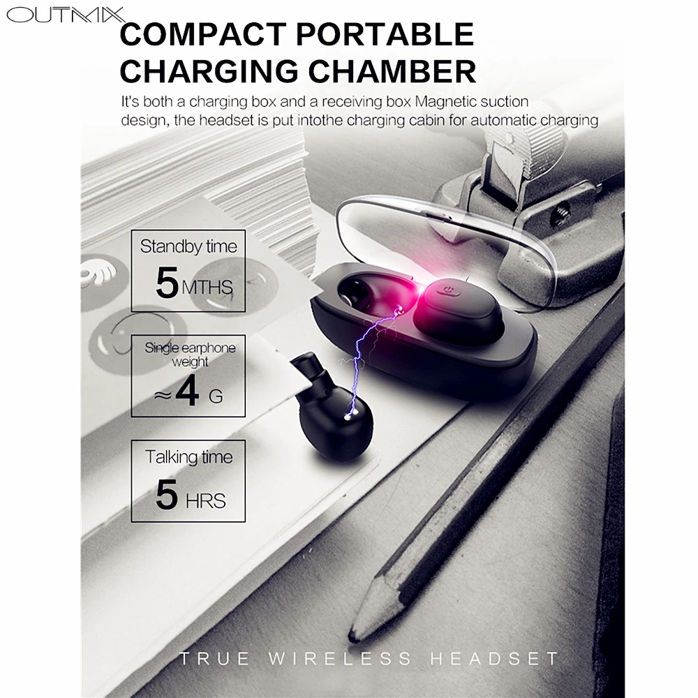 TWS Wireless Bluetooth Earphone mini Headset Stereo Waterproof Earbud Headset With Charging Box Mic For All Smart phone computer