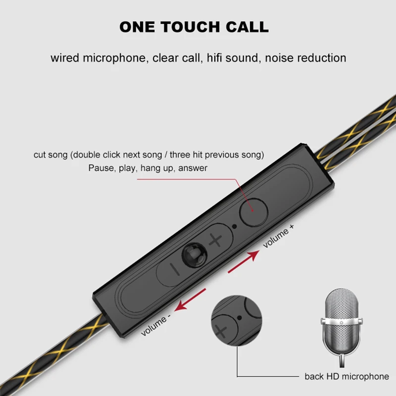 HIFI Music Wired Headset In-ear Universal For Android phone PC Bass Microphone Metal Earbuds Running Sports Earphone S1