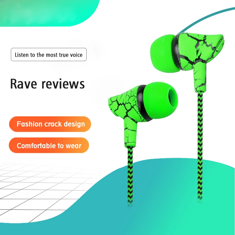 Crack Braided HeadsetS Wired Headphone with Microphone 3.5mm Wired Control Super Bass Universal for Android iPhone Xiaomi