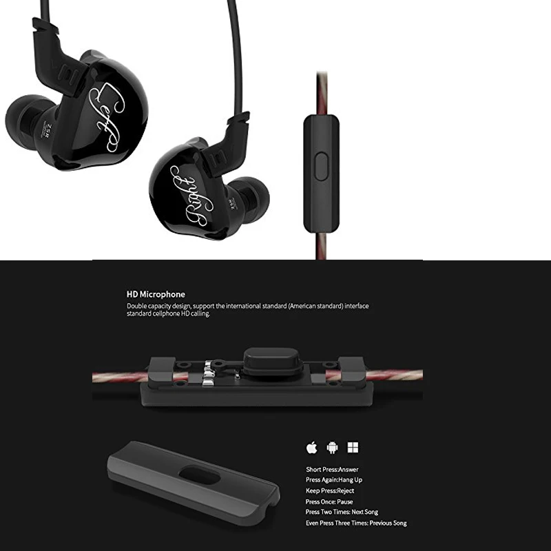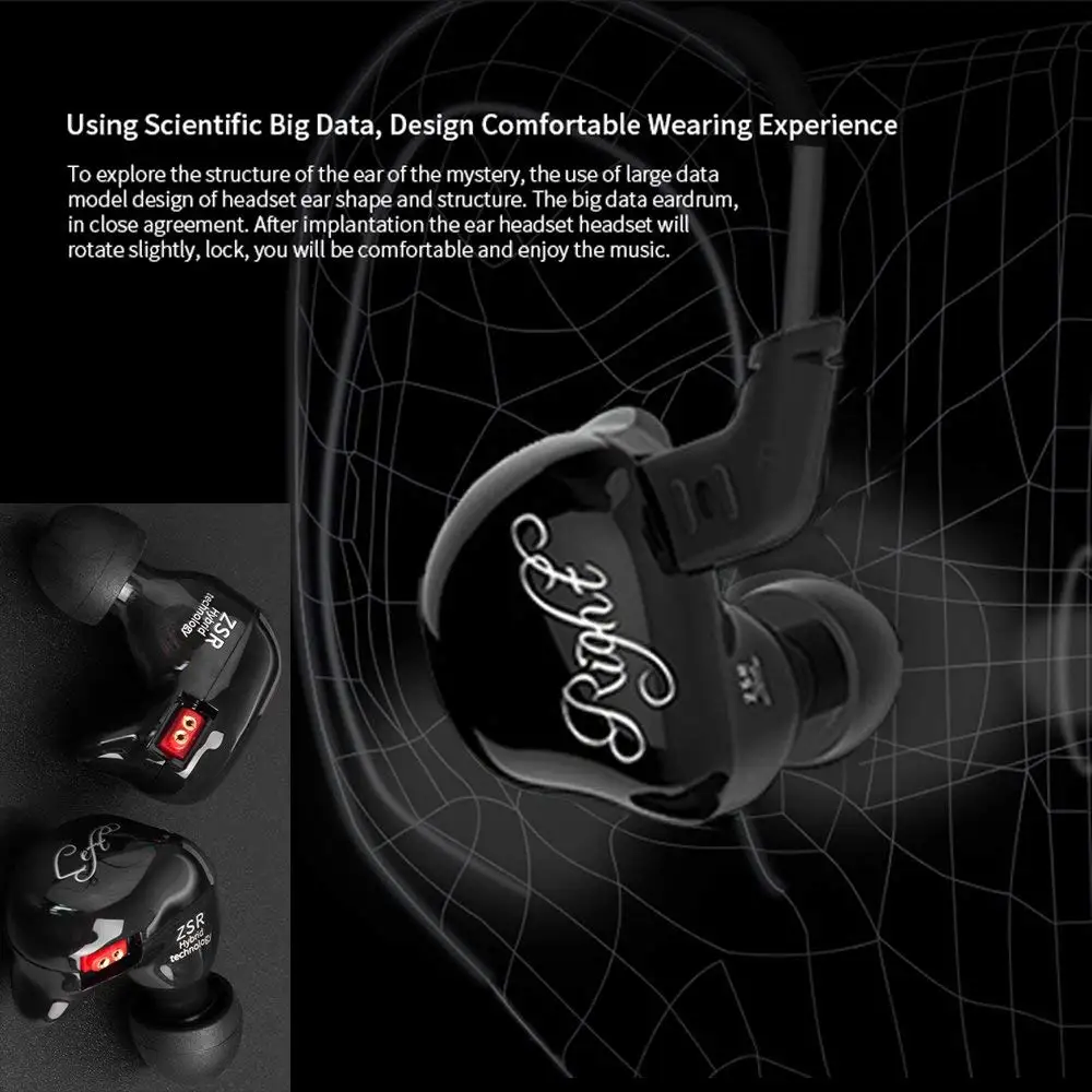 KZ ZSR In-Ear Headphones Earphone Hifi Stereo Deep Bass Earbuds with Detachable Cable 1DD+ 2BA Headset with Hybrid Driver for